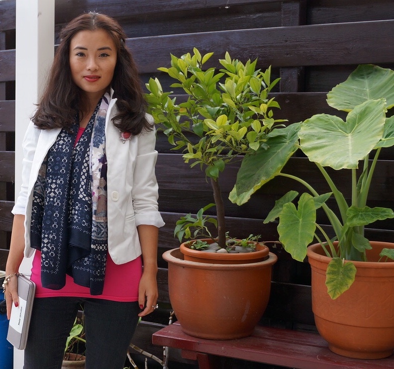 Fashion from: White blazer SOHO Italy, black skinny BCBG jeans, black boots with laces on the back from Peter Kaiser shoes, Jane Norman pink top, H&M scarf, Swarovski rings, Bijoux Brigitte bracelet, Michael Kors purse used as clutch