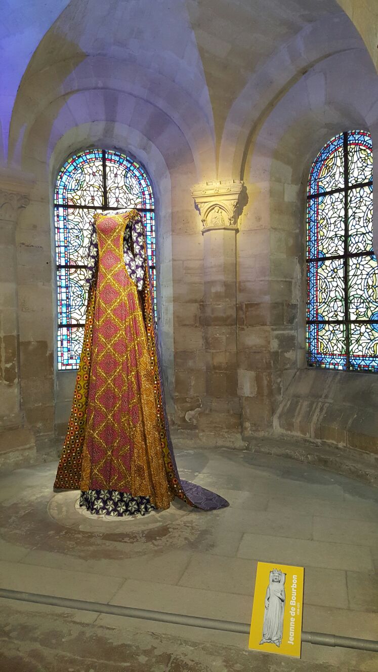 In this beautiful building, you can see the beautiful collection of Royal Gowns by Lamyne M. a designer born in 1977 in Cameroon. The artistic collection in this exposition of Royal Gown is inspired by Queens and Princess who’s remains are in the Basilique. Each piece is unique. Fabric, colors and prints are choosen carefully and commonly worn by current Saint-Denis residents. For example African wax, denim, jersey, and ceremonial cloths from North Africa. With this, the artist hopes to make it more attractive for current local residents to pay a visit to the beautiful Basilique. There is a story behind each of the beautiful unique gowns. Well done Lamyne M!