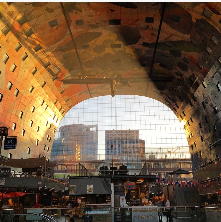 The inspiring Markthal full of beautiful food stalls, food stores and restaurants